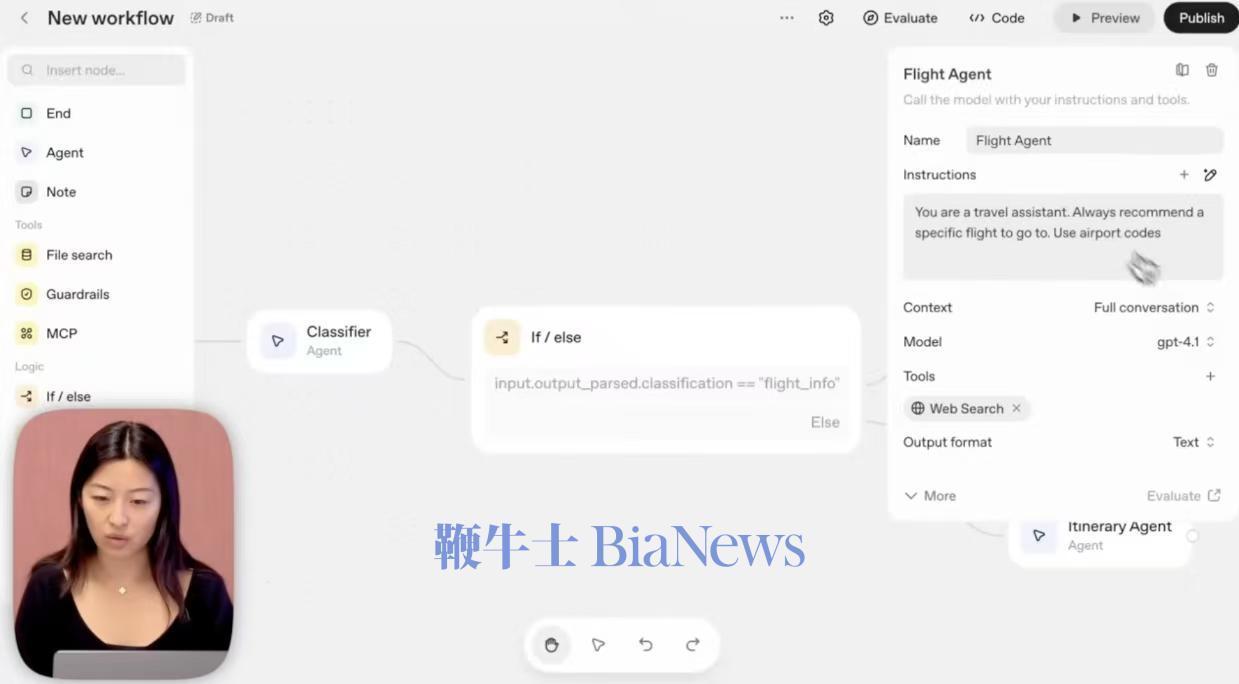 如果说SDK是入口,那 AgentKit 就是引擎。Christina Huang现场仅用8分钟就搭建出一个完整AI Agent,包括界面、逻辑、部署、测试,全程零卡顿,还剩49秒。
